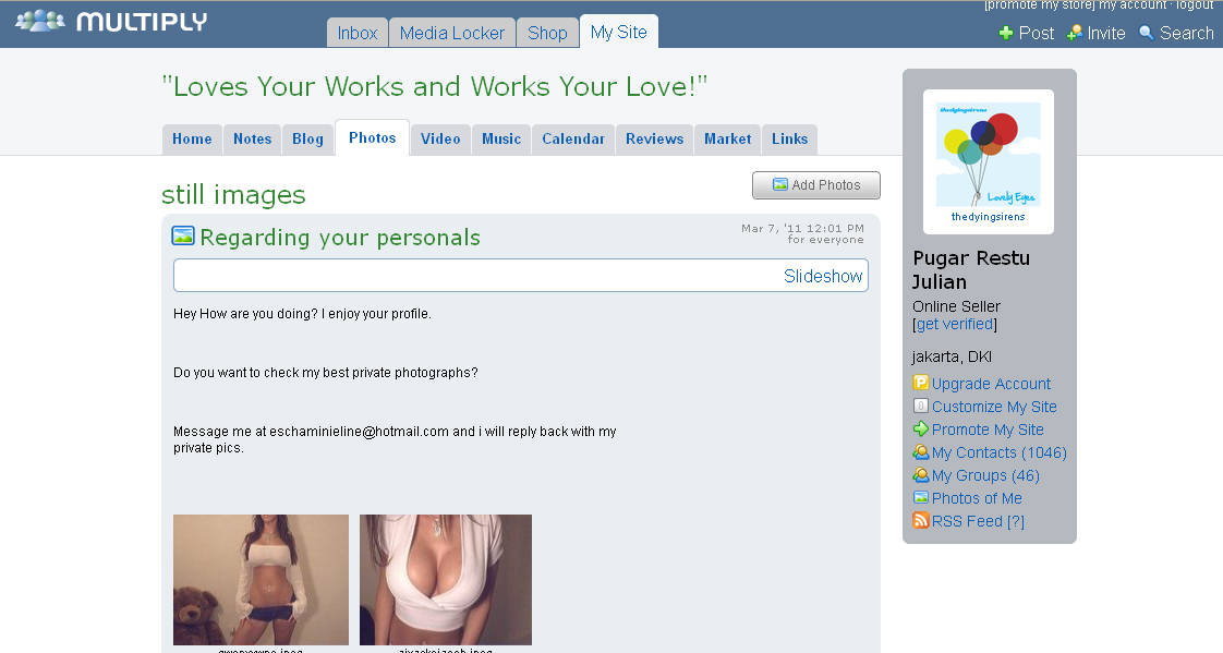 Sebenernya udah beberapa kali terjadi nih…udah gue ganti 3 kali passwordnya terakhir ini..tapi masih kayak gini juga…selain yg bikin sebel krn ada foto2x itu adalah…ya karena fotonya itu2x aja! gak ada variasinya! hahahaha