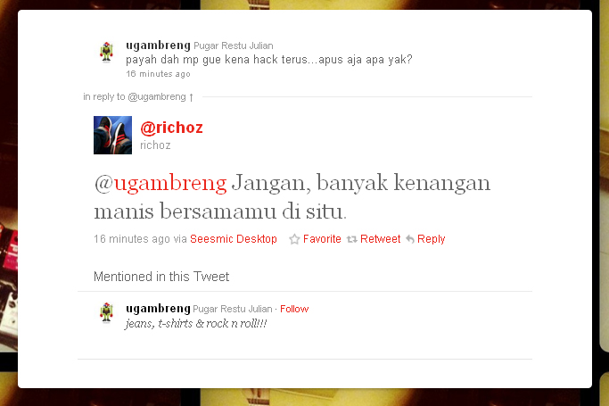 tapi ada reply dari teman2x saya yg membuat saya gak jadi ngapus account saya…hehehe (mureee banget gampang terprovokasi!)