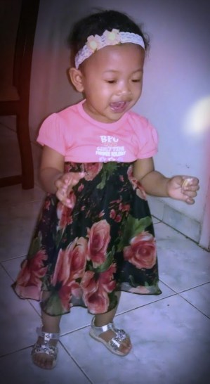 Najma sebenernya sudah bisa berdiri (begitu menurut narasumber Reniy, yg juga ibu dari Najma-RED – sedap), cuma kurang pede aja…