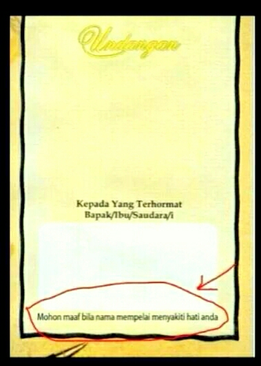 Di undangan kalian ada tulisan ini gak? πππππ – with rochman and Unggul