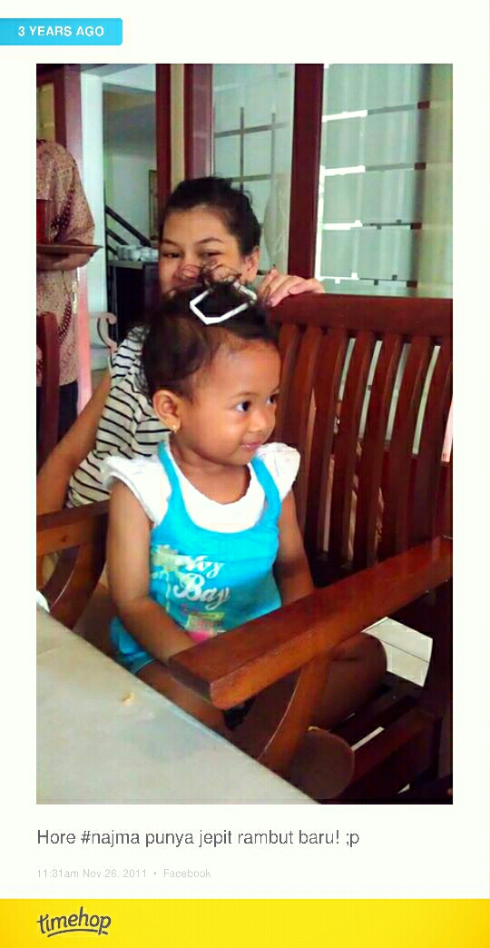 Najma waktu belom tengil. Pake jepitan rambut dari sedotan karya tante Pipi.