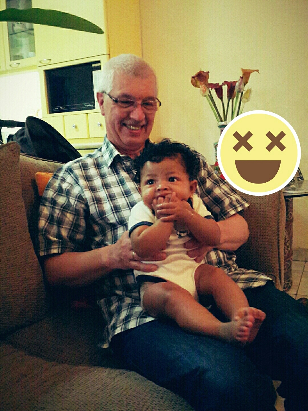 Mukanya Luna kenapa begini pas dipangku sama opa Rene? 😆 – with Regina, Nila, Widiawati , and Reniy