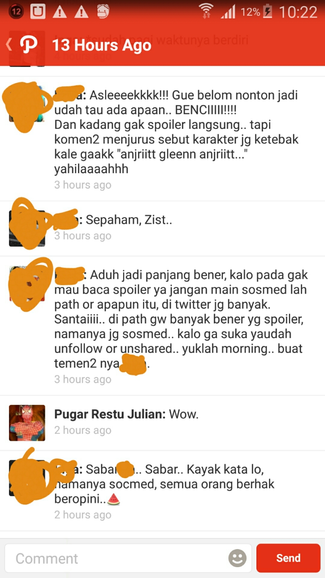 Sepertinya si pemberi spoiler merasa dibully oleh teman-teman si mahmud tersebut.