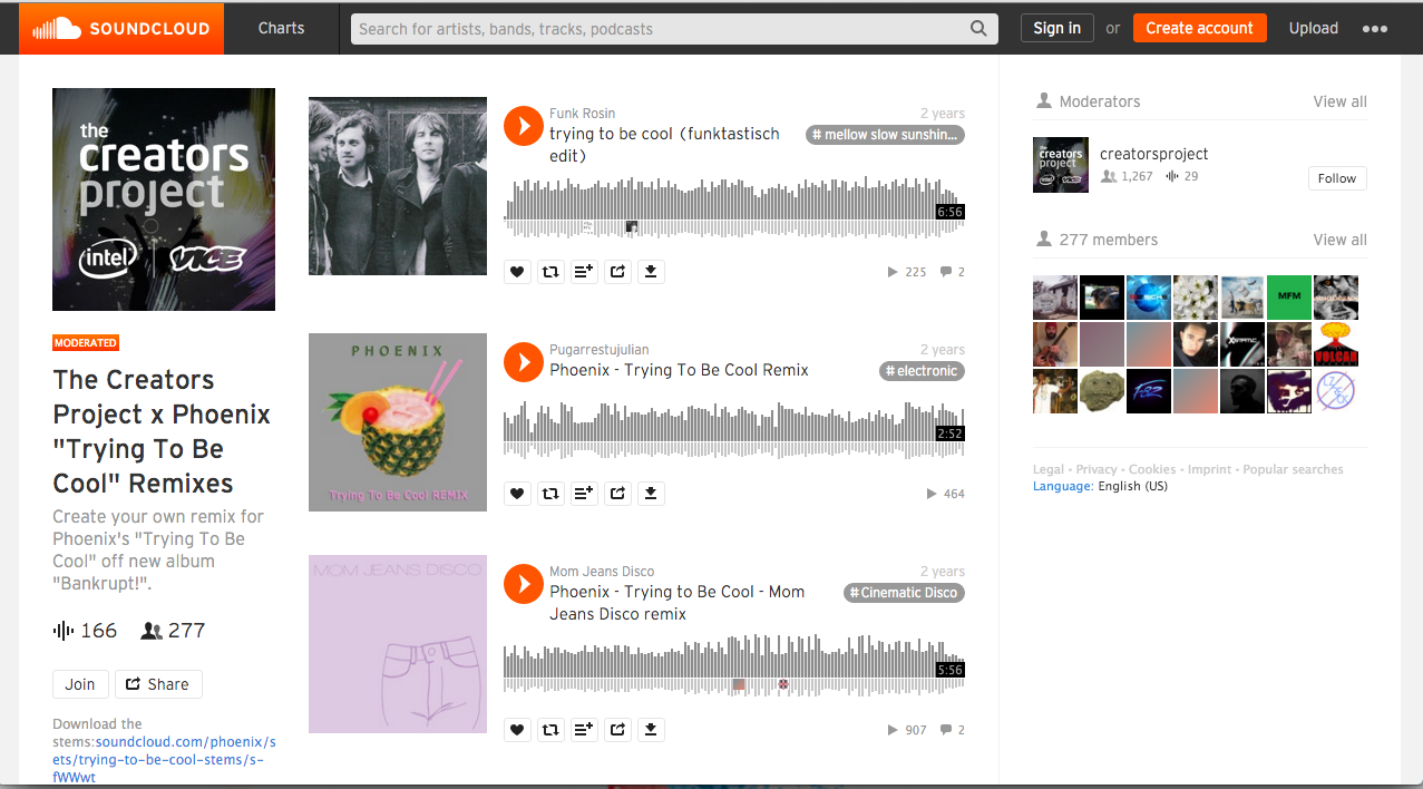 Karena ngepost Phoenix tadi di grup Selecta Pop jadi inget, kalau 2 tahun lalu gue sempet ikuta project ngeremix salah satu lagunya Phoenix – Trying To Be Cool di soundcloud. Phoenix ngerilis track-track terpisah dari lagu tersebut buat diunduh yang lalu bisa dipakai untuk diremix. Lumayan banyak yang ikutan.